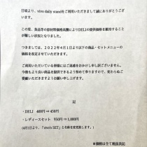 【お知らせ】本日よりデリ価格改定(値上げ)、そしてvivo's SET登場!