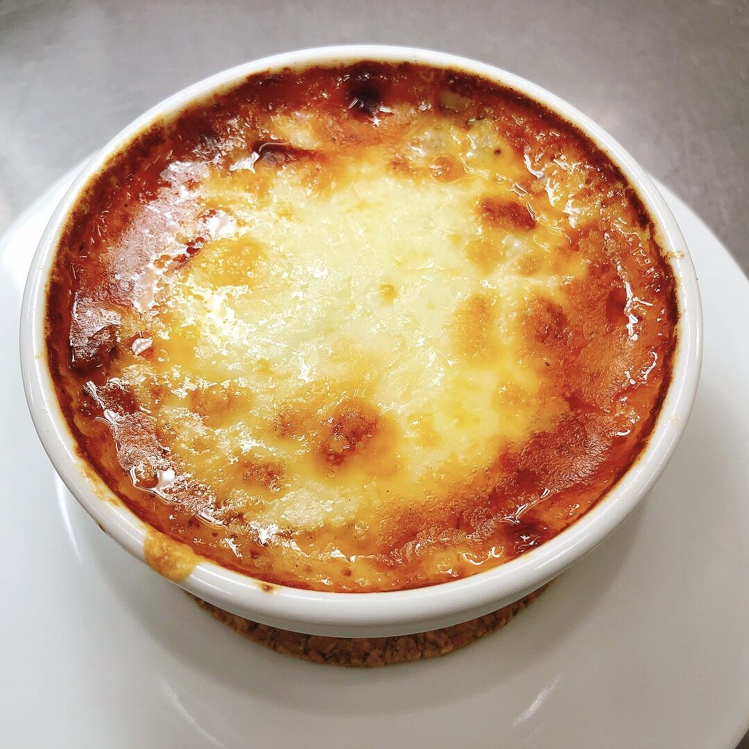 ビーボでは、トマトソースの上にラム挽肉とナスを重ね、さらにホワイトソース、チーズが乗ります。