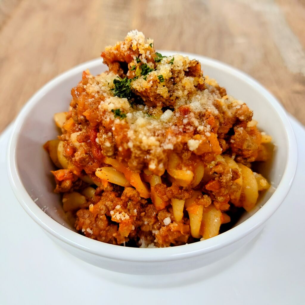 赤ワイン、香味野菜を使ってじっくり煮込んだ自家製のボロネーゼとフジッリを組み合わせました。