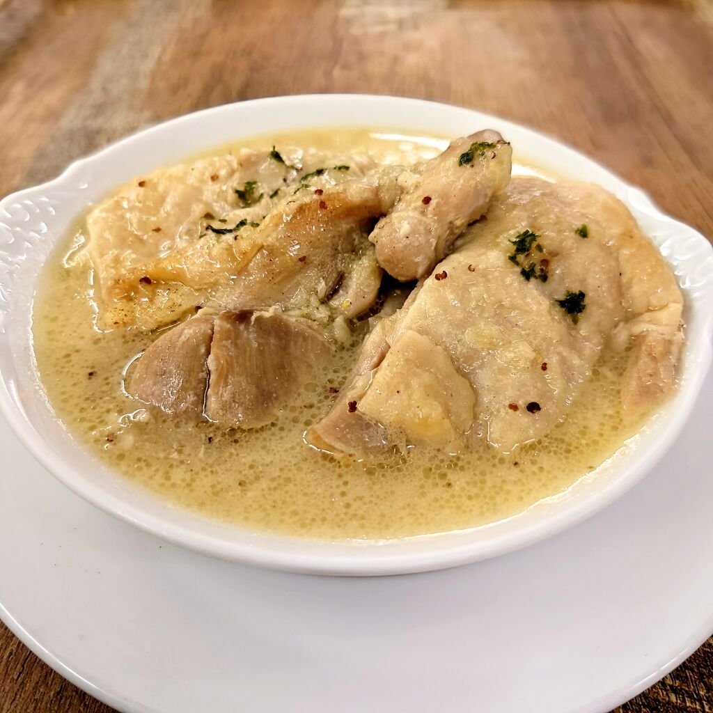 【 鶏もも肉のフリカッセ マスタード風味 】
